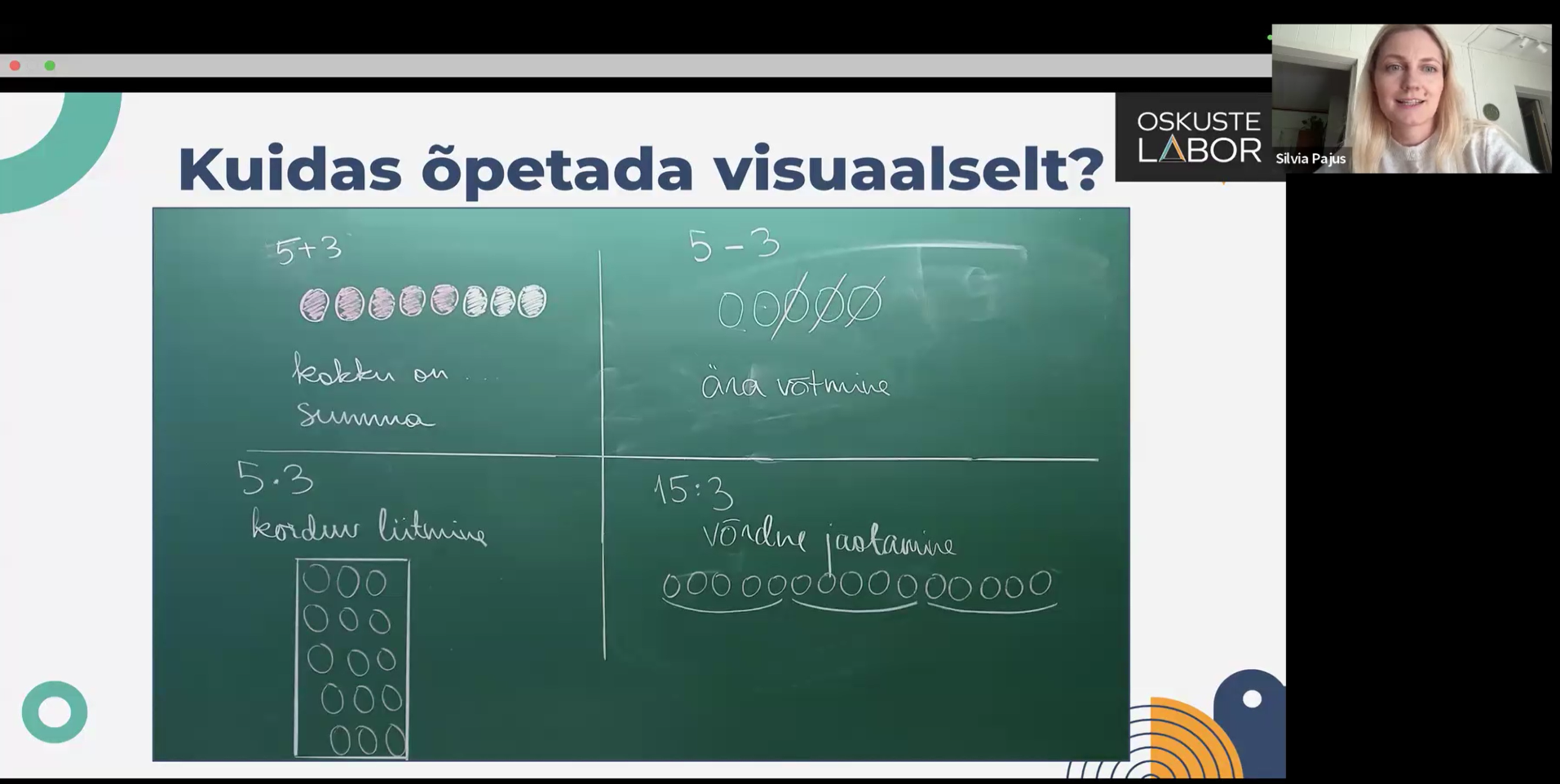 Silvia Pajus on pikaajalise kogemusega matemaatikaõpetaja ja haridusearendaja, kelle südameasjaks on õpilaste matemaatilise mõtteviisi arendamine läbi õppeprotsessi süsteemse kaasajastamise. Ta on panustanud riikliku matemaatika ainekava uuendamisse ja õppematerjalide loomisesse. Oskuste Labori koolitustel seob Silvia oma teadmised igapäevase klassitöö praktikaga, pakkudes kolleegidele läbimõeldud meetodeid ja lahendusi, mis toetavad matemaatikaõpetuse tähendusrikkust ja õpetaja töö tõhusust.