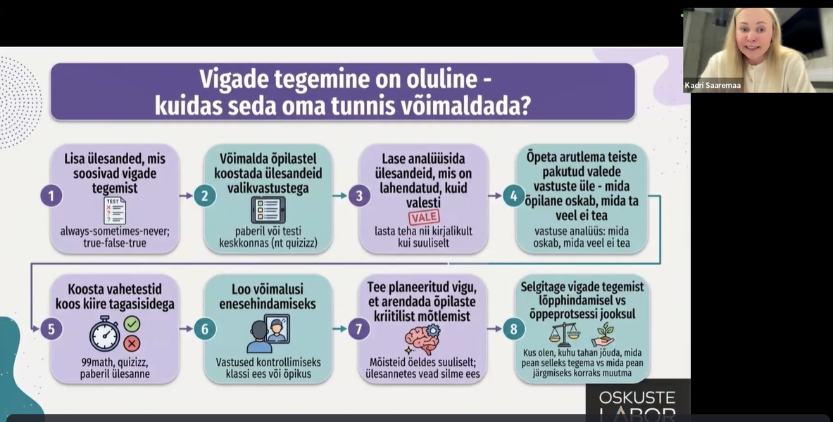 ‘‘Meeldis, et jagasite enda koostatud õpilaste tagasiside küsimustiku, mida saan ka ise kasutada. Meeldis ka see, et Kadri pööras tähelepanu õpetaja esmastele emotsioonidele õpilaste tagasisidele.”